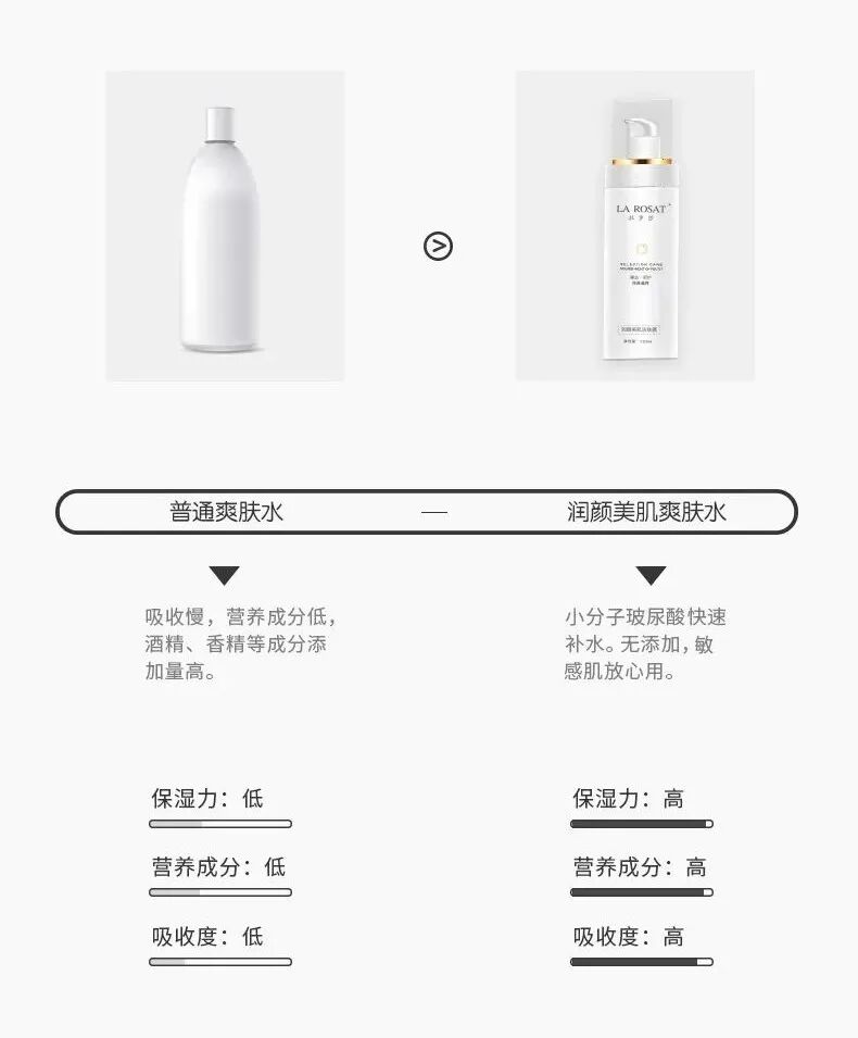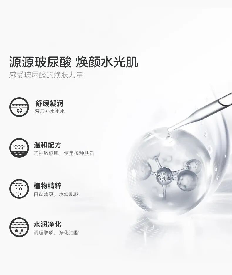 添加小分子玻尿酸,深入保濕,快速滲透易吸收,瞬達肌底,讓肌膚暢快喝飽水,涂后即刻水潤,做到真正的秒補水。